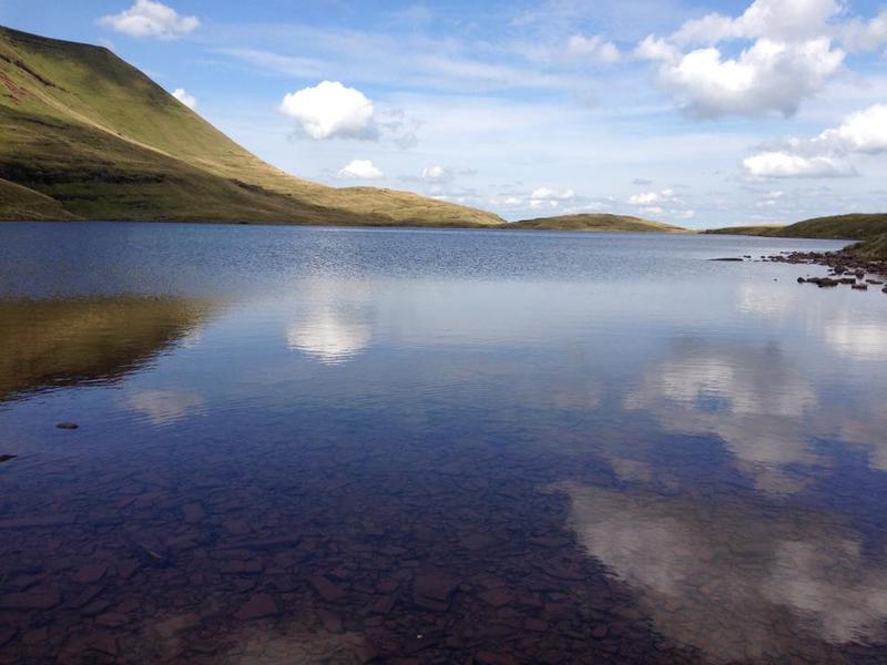 The next day rained and rained, so where better to go than to a waterfall you can walk behind where it doesn't matter if you get wet. A strange almost mystical wind blew behind the waterfall. It reminded us of what John of the Cross said in which the soul can become united to God and transformed in him, by drawing from within God a divine breath. When the rain finally subsided we climbed up to Llyn y Fan Fawr, where there was a panoramic view for miles across the highest peaks in southern Britain.