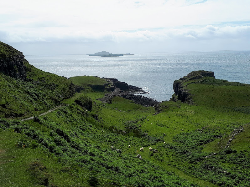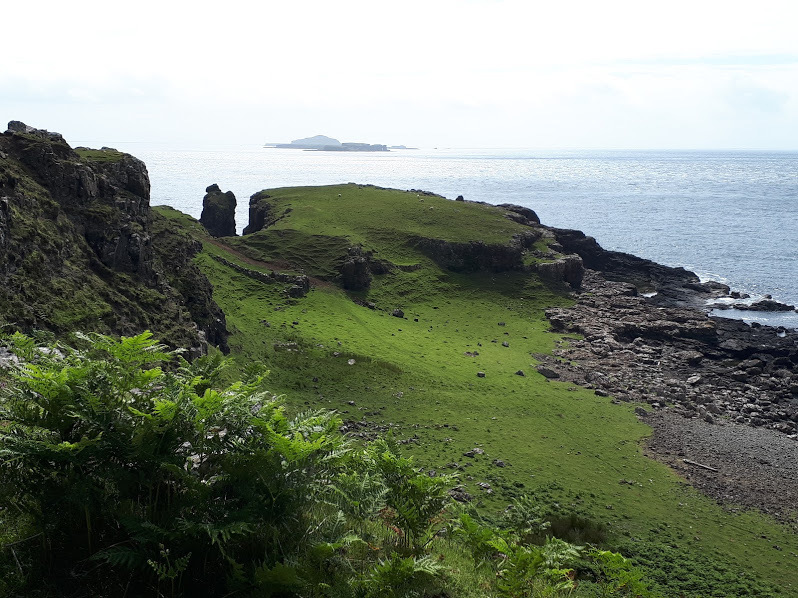 We will see traces of an ancient iron age settlements, of old villages deserted in the clearances, and if we are very sharp-eyed we will find the well-hidden cave with the remains of the still that produced the golden liquid spirit that was so much part of people’s lives, symbol of the clash between ordinary folk and bureaucracy, and we will have the chance to examine the spectacular geological history of the island as we scramble along the coast.