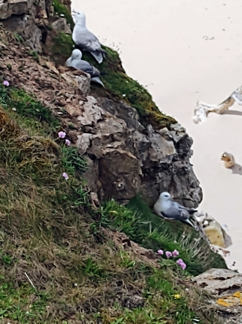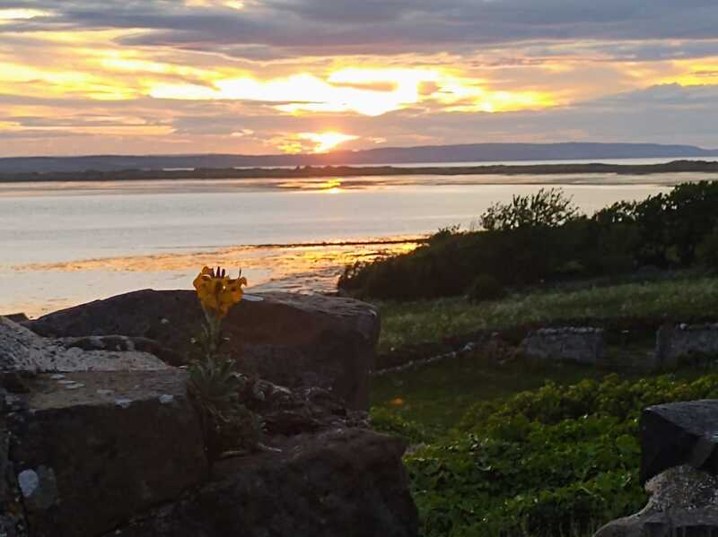 Mary Gunn took us out again on Thursday morning, this time walking to the dunes and coast at the north end of the island. Her botanic knowledge pointed out many plants, including Early Marsh Orchid and Northern Marsh Orchid. Also, the invasive Pirri-pirri bur from New Zealand, with warning signs to remove burrs from clothing and dogs to prevent it spreading off the island. Birdlife included eider or "Cuddy" ducks (with the first chicks Mary had seen this year), oystercatchers, lapwings, cormorants, a lone gannet and, perhaps best of all, fulmars swooping past us on the cliffs. For the paleontologists, Mary teased some crinoid fossils out of the cliffs, also known as St Cuthbert's beads or Cuddy beads as they were strung together as necklaces or rosaries in medieval Northumbria. It seems that you can't go far on Lindisfarne before encountering some reference to Cuthbert! A free afternoon left us to revisit favourite island spots, discover new ones, or browse the shops. I found the Lindisfarne Gospel Garden at Marygate to be a quiet, sunny spot for contemplation.