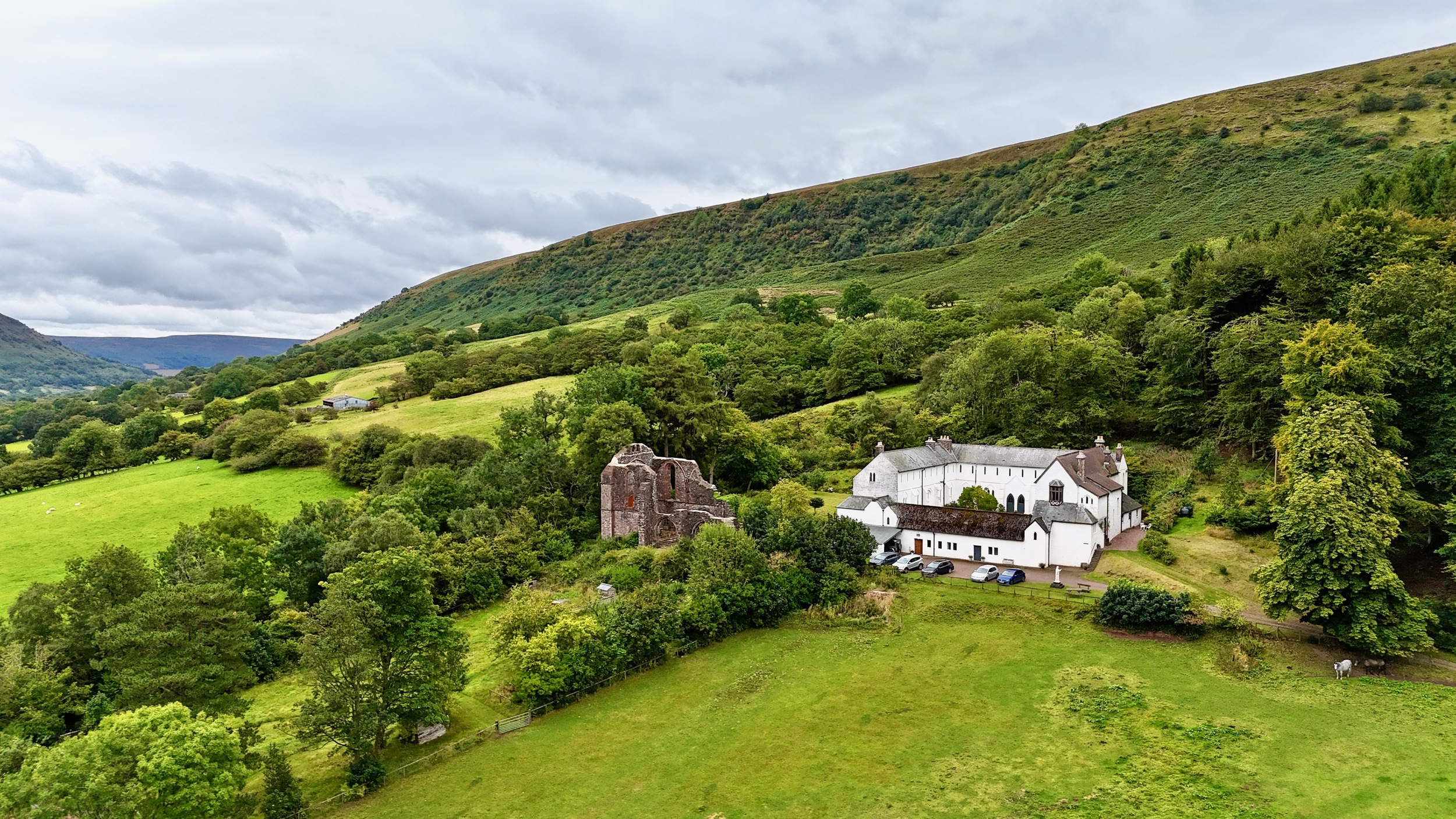 We start the day at the ruins of this Augustinian abbey destroyed during the Reformation in the 1530s. We then walk up on to Offa's Dyke path - named after the wall built by the 8th Century Mercian King to control the border between England and Wales. After a plateau walk we descend into Capel-y-Ffin, renowned for its tiny wonky wooden church and a monastery built by the self-styled Father Ignatius in the 1870s, that later became home to a community of artists and writers who came here in the 1920s to find creative inspiration and peace after the horrors of the First World War. This is also the place where apparitions of the Virgin Mary were seen over a two-week period in 1880 by boys from a nearby farm and by monks from the monastery (6 miles).